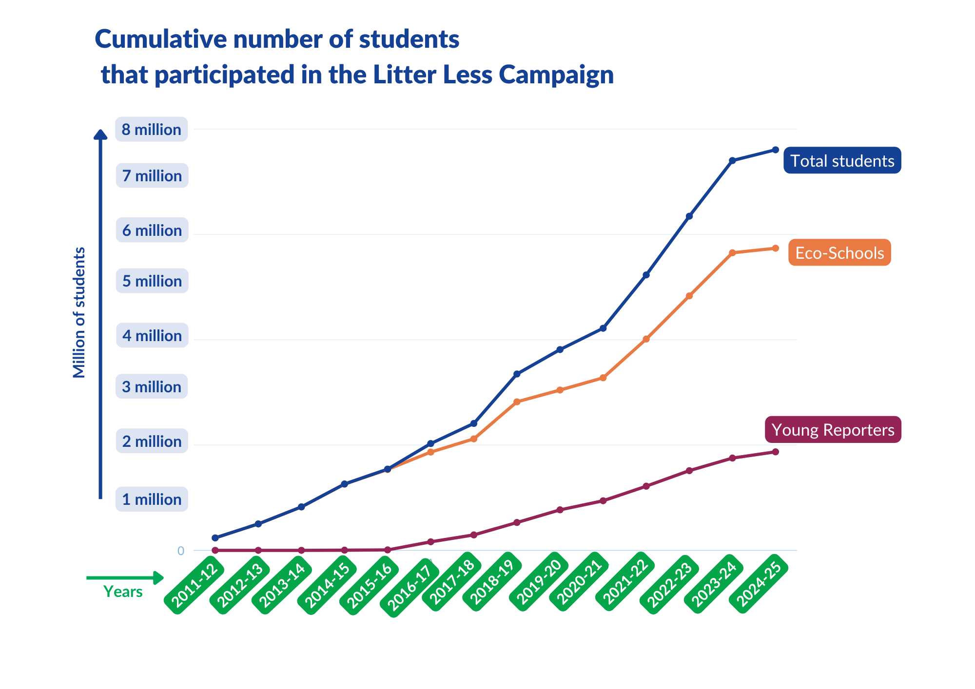 Timeline of cumulative student participation (July 2025)