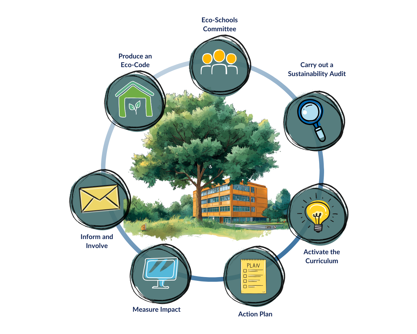 The Eco-Schools Seven Steps methodology is a series of carefully engineered measures to help schools maximise the success of their Eco-School ambitions. The method involves a wide diversity of individuals from the school community, with students playing a primary role in the process.